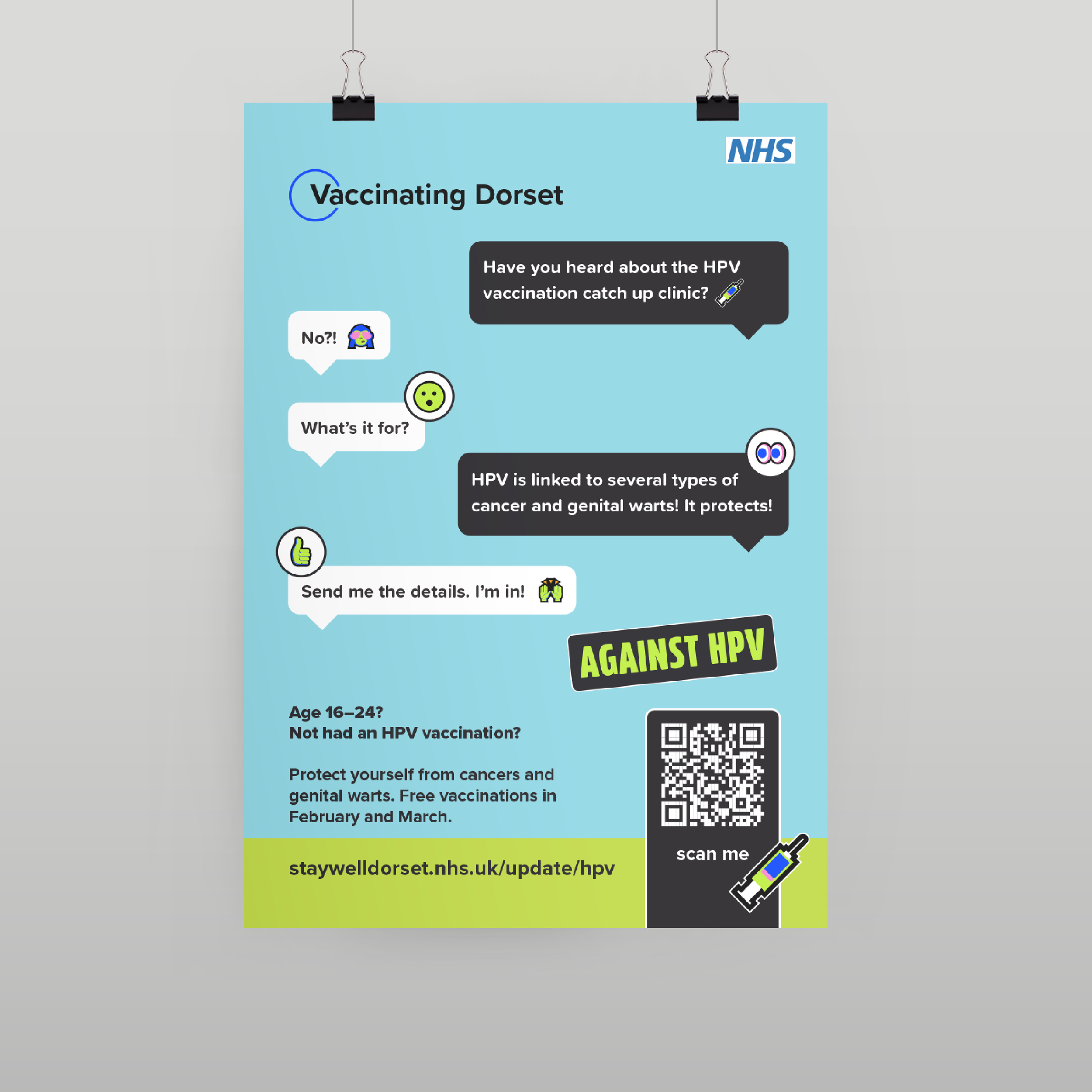 A multi touchpoint campaign aimed at people age 16 – 24-year-olds who have not already had their HPV vaccinations in Dorset. This campaign is aimed at catching up those who have missed their vaccinations. It ran for a total of 3 months, sending all of our traffic back to our vaccination website with clinics and easy access to everything young people need to know about their HPV vaccination.